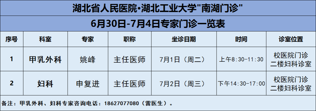 6月30日-7月4日,欧洲冠军联赛_2024年欧洲杯投注-【官网直营】医院将邀请湖北省人民医院知名专家——甲乳外科姚峰主任、妇科申复进主任两位专家教授前来校医院坐诊(具体坐诊信息见下),请广大师生、周边居民持续关注南湖门诊专家坐诊信息,如有: