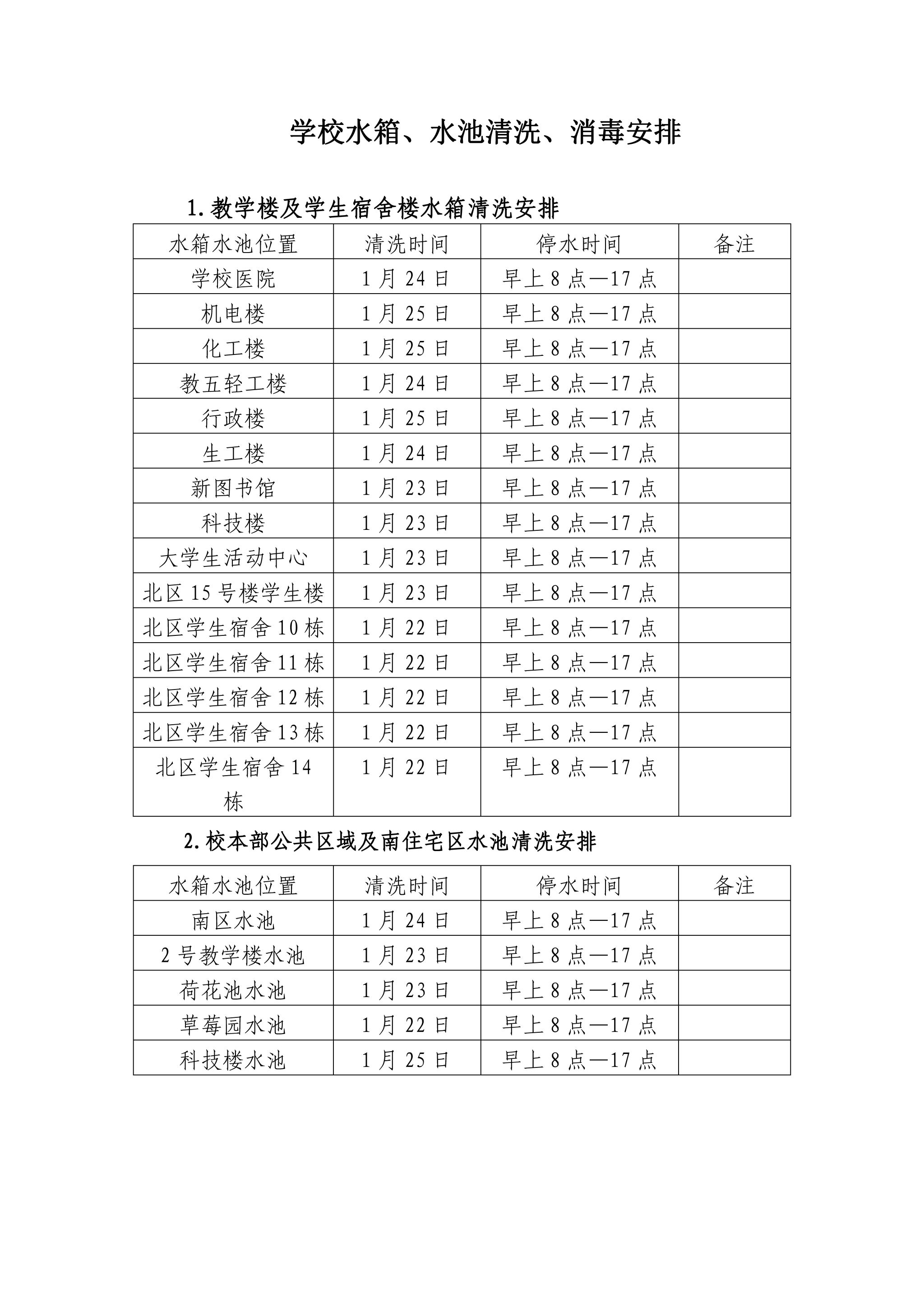 根据卫生部门指导要求,为保障欧洲冠军联赛_2024年欧洲杯投注-【官网直营】饮用水的卫生安全,我处拟于1月22-25日期间对全校水池水箱进行清洗、消毒(安排详见附件)。