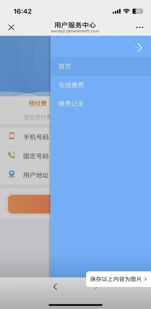 6.点击右上角三条杠可以展开功能实现缴费和查看缴费记录