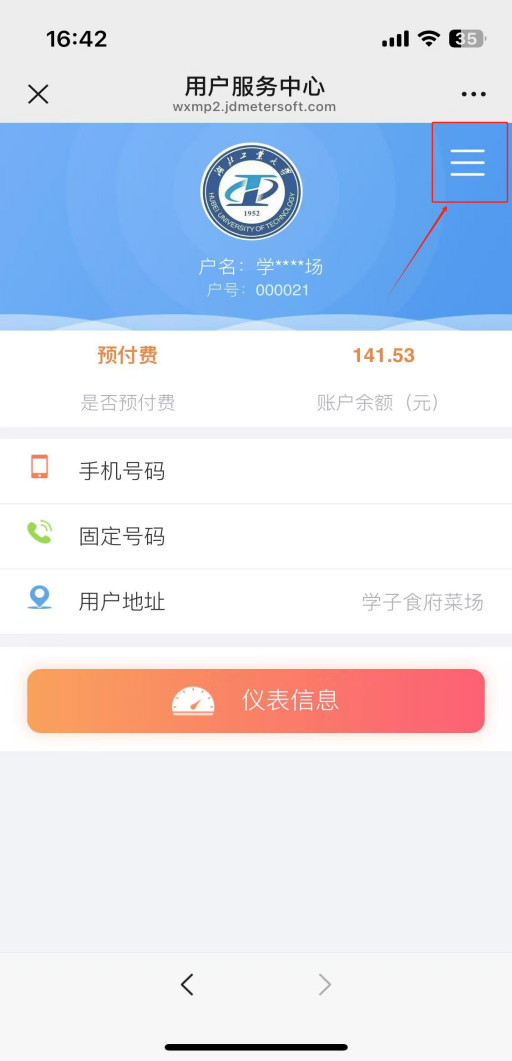 7.点击首页仪表信息可以查看水表相关信息(如价格方案:水价)