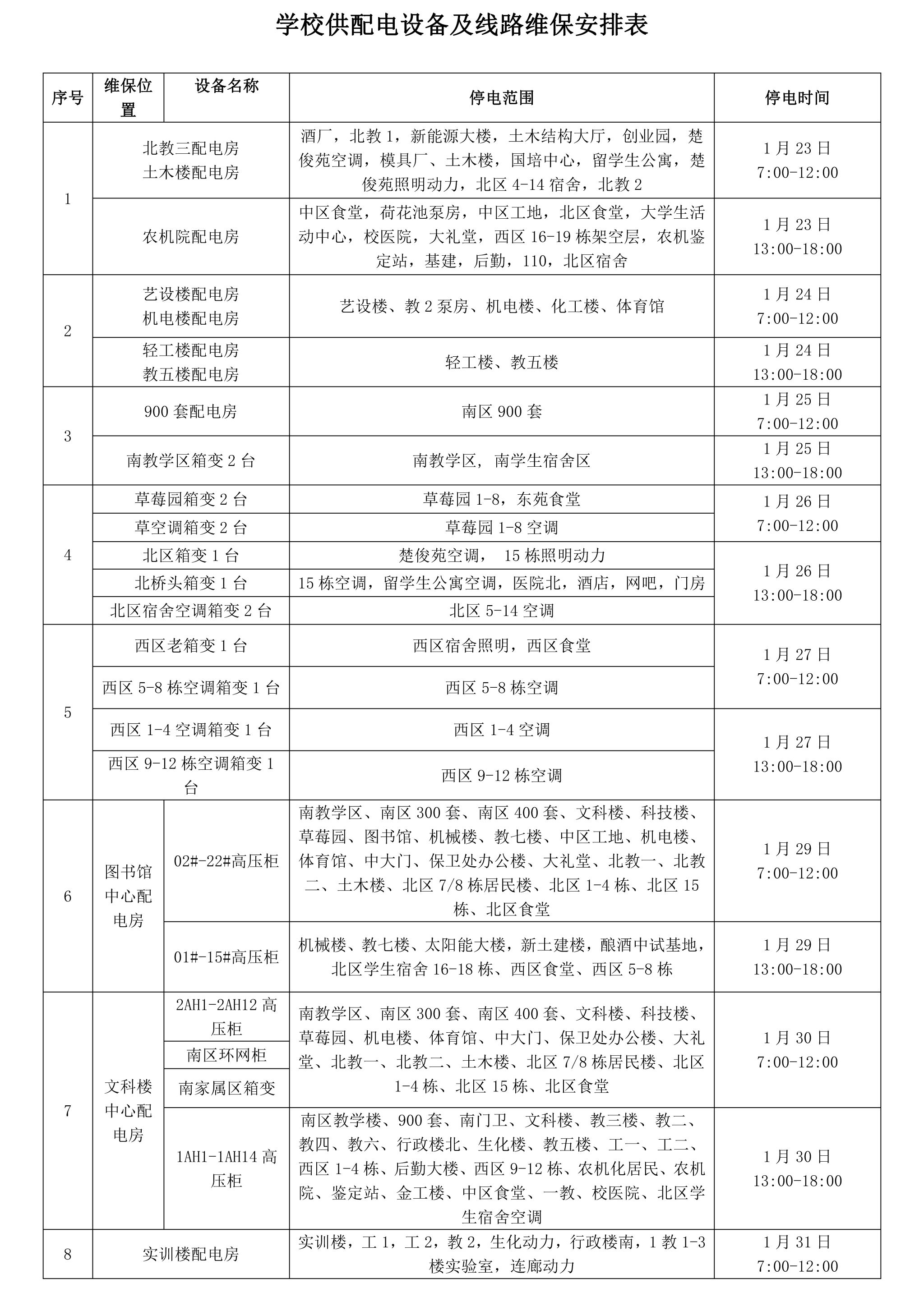 欧洲冠军联赛_2024年欧洲杯投注-【官网直营】配电房及箱式变电站数量较多,投入使用年限较长,部分设备出现元器件老化情况,存在供电隐患,为确保校园电力系统安全稳定运行,并提升供电质量,拟于1月23-31日期间实施“欧洲冠军联赛_2024年欧洲杯投注-【官网直营】供配电设备高低压检测及维护”项目(欧洲冠军联赛_2024年欧洲杯投注-【官网直营】已批准立项),期间校内部分区域、单位将分时出现短时停电、停水,烦请提前做好安排,避免对工作、生活造成影响。