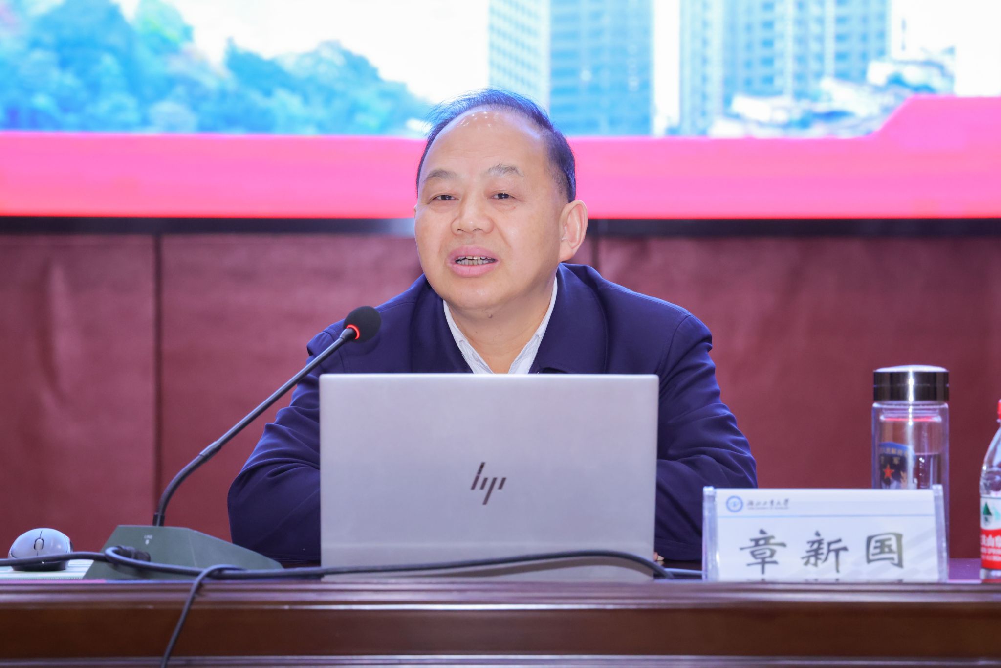 省委政研室原副主任章新国应邀来校,以《牢记殷殷嘱托,加快建成支点》为题,从“支点建设的提出及其内涵”“整体提升支点建设的路径”“加快建成支点的战略保障”三个方面,全面宣讲、系统梳理、深入解读了全省加快建成中部地区崛起重要战略支点推进大会精神。