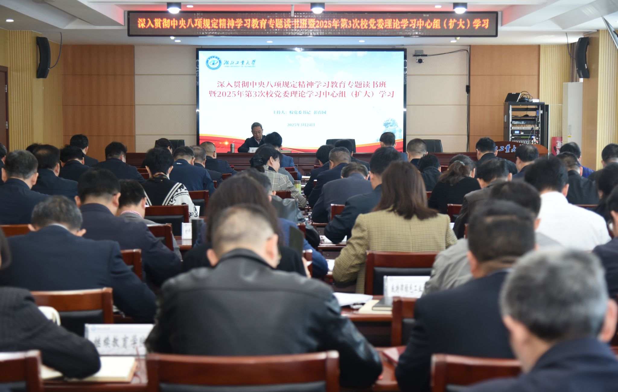 3月24日,欧洲冠军联赛_2024年欧洲杯投注-【官网直营】举行深入贯彻中央八项规定精神学习教育读书班暨2025年第3次校党委理论学习中心组(扩大)学习,深入学习贯彻2025年全国两会精神和习近平总书记在全国两会期间的重要讲话精神,深入学习领会中央八项规定精神,全面贯彻落实全省教育大会精神。校党委书记彭育园主持会议并作总结讲话,校党委理论学习中心组成员、全体正处级领导干部、各单位(部门)主要负责人参加学习。