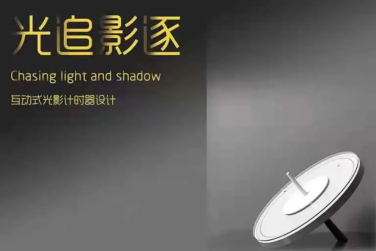 《追光逐影-光影计时器设计》 作者:徐彤彤 指导老师:李珺 灵感来源于日晷,使用者可以跟随光影的变幻来感受时间的流逝,同时寓意着"珍惜时光,品味文化"。
