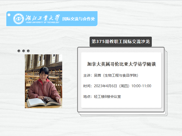 加群时请备注“单位+姓名+工号”,进群后及时按“学院+姓名”格式更名,并添加“湖工大国际”微信公众号,关注相关通知。在不影响正常工作的原则下,全校教职工均可灵活参加沙龙,本沙龙不收取任何费用。