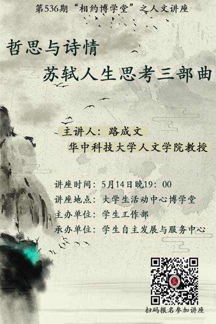 讲座主题:哲思与诗情:苏轼人生思考三部曲